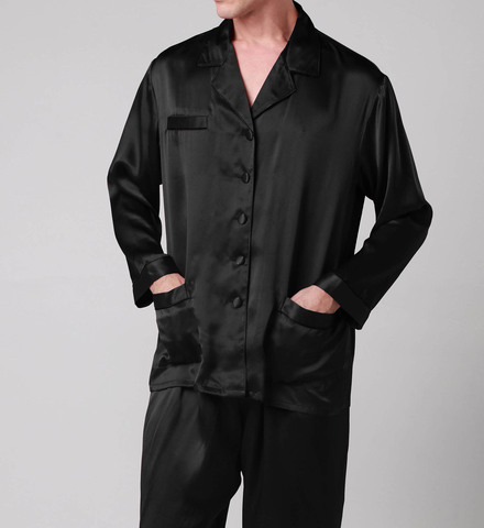 Vêtements de nuit de luxe classiques personnalisés Pyjamas pour hommes Pantalons assortis sur toute la longueur et à jambes larges avec cordon de serrage Ensemble de pyjamas longs en soie